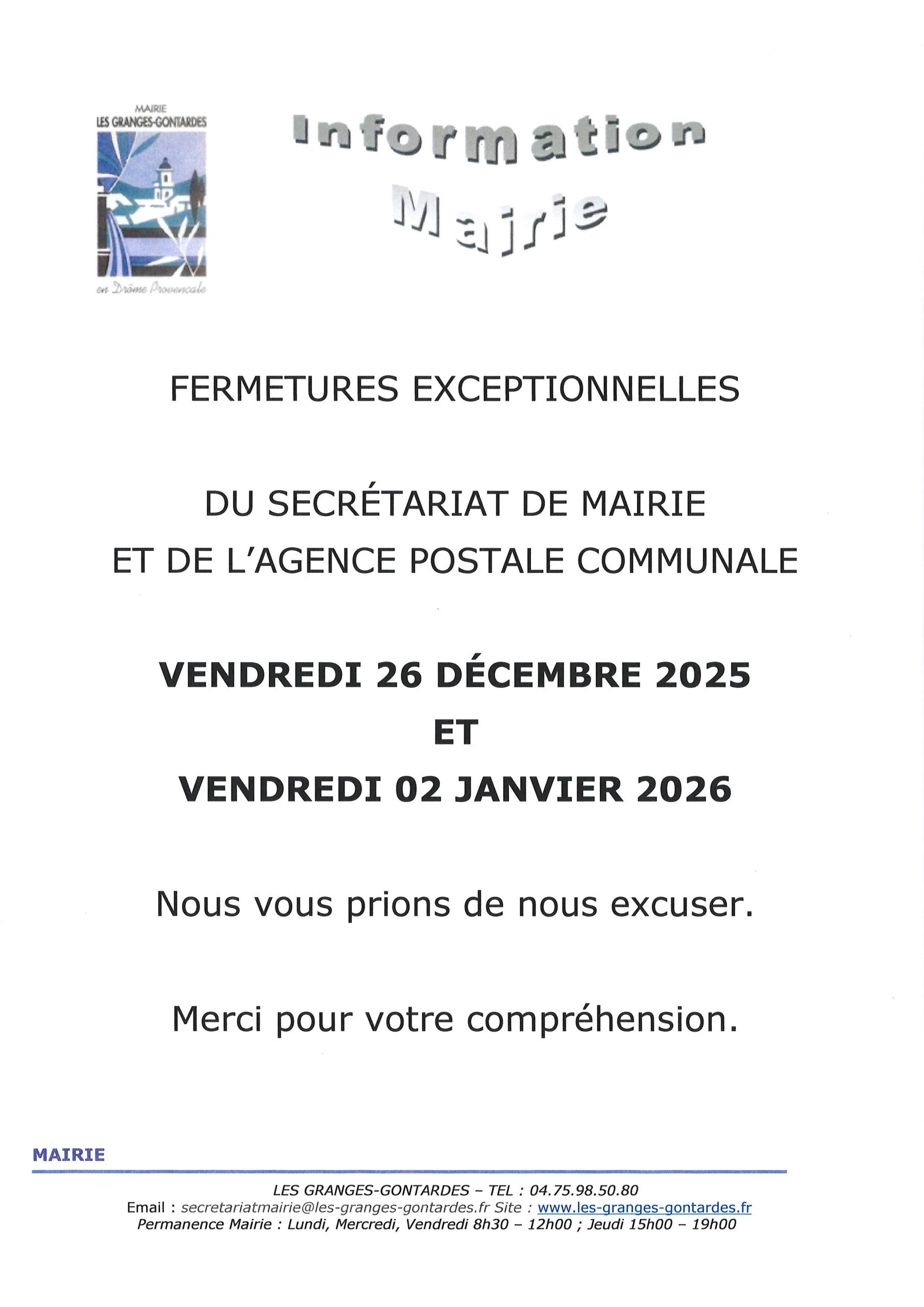Fermetures exceptionnelles Mairie et Agence Postale Communale
