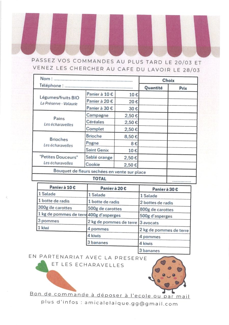 Indiquez aux familles concernées, qu’elles nous laissent leurs coordonnées sur la messagerie, en indiquant bien leur N° de téléphone. La distribution se fait sous forme de Drive.