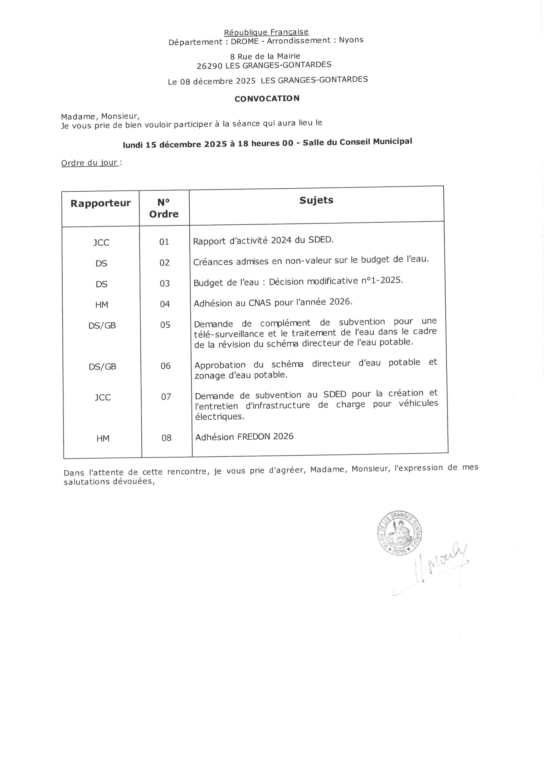 Le Conseil Municipal du 15 décembre 2025 à 18 h 00 se déroulera en mairie.